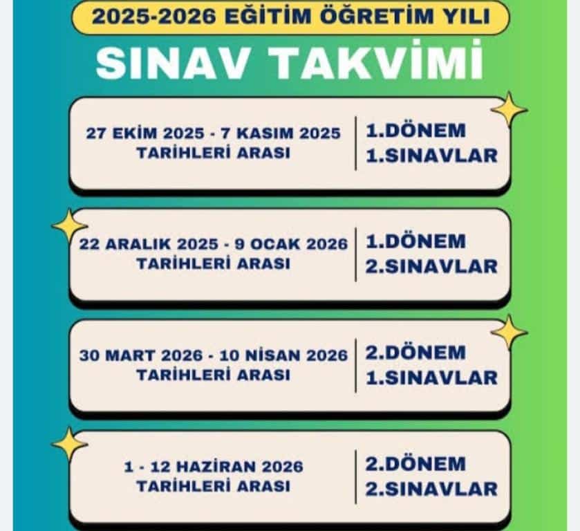 2025/2026 EĞİTİM-ÖĞRETİM YILI SINAV TAKVİMİ YAYIMLANDI